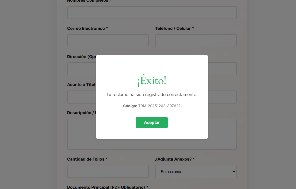 Además cuando se envié un documento el sistema generara un código el cual servirá para su seguimiento de trámite el cual también será enviado por correo.