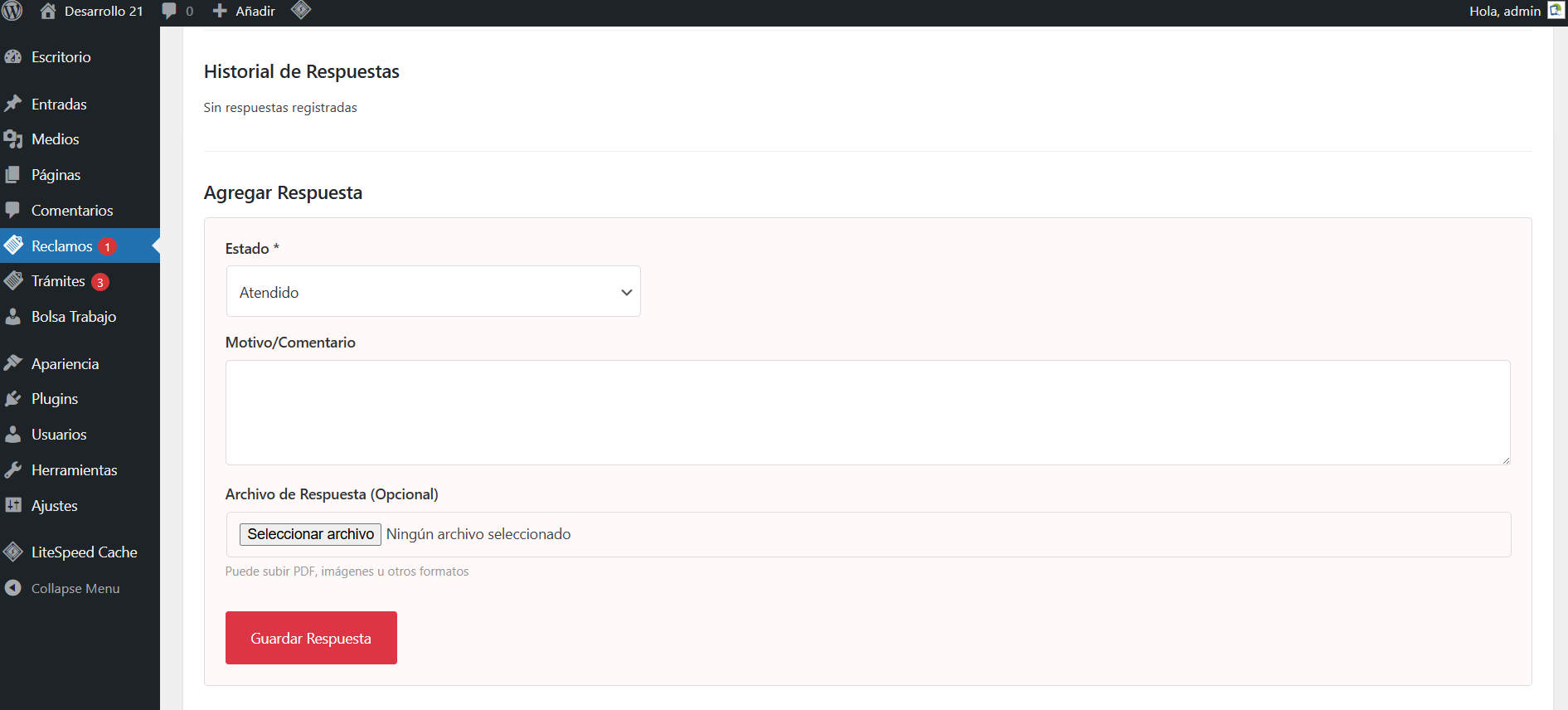 - ATENDIDO: Puede elegir este estado escribir una respuesta y adjuntar un archivo