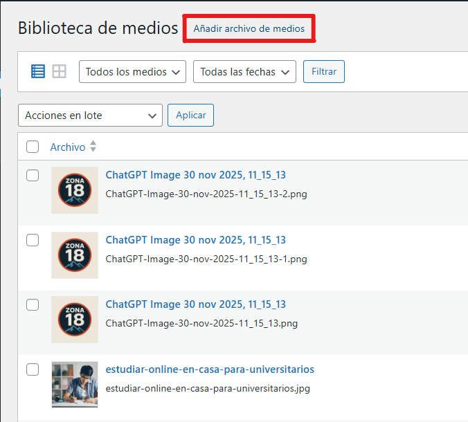 2. MANUAL DE BIBLIOTECA DE MEDIOS EN WORDPRESS