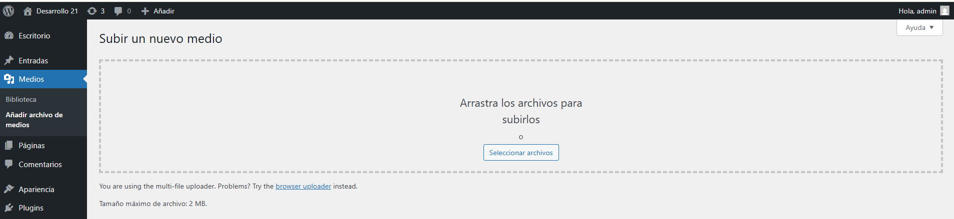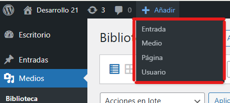 - Haz clic en "Medios" > "Añadir nuevo".