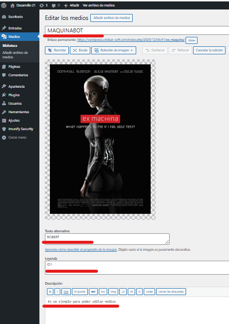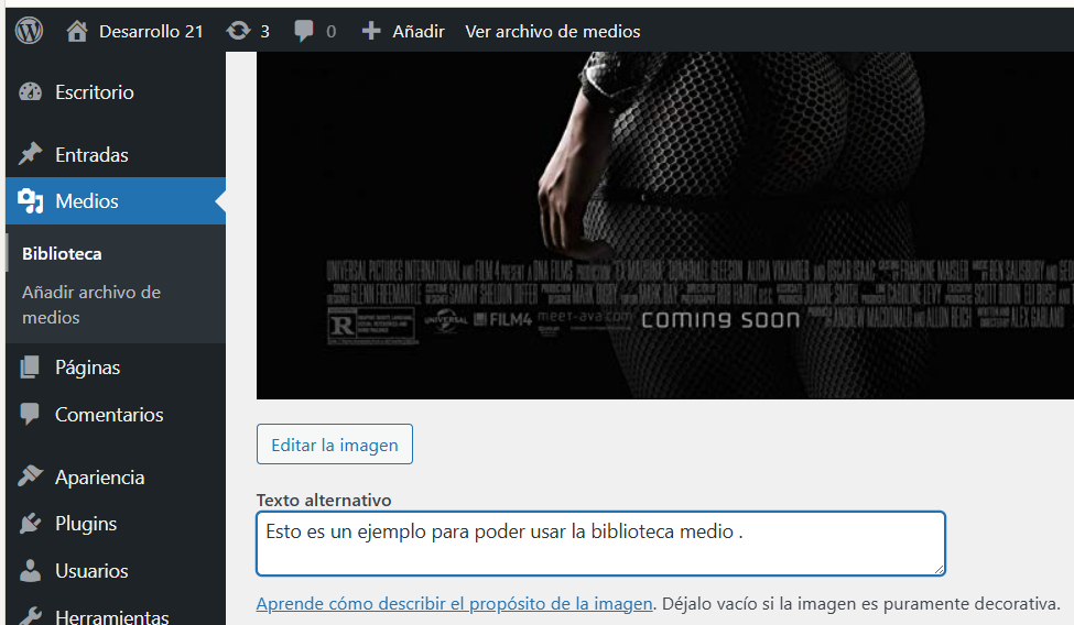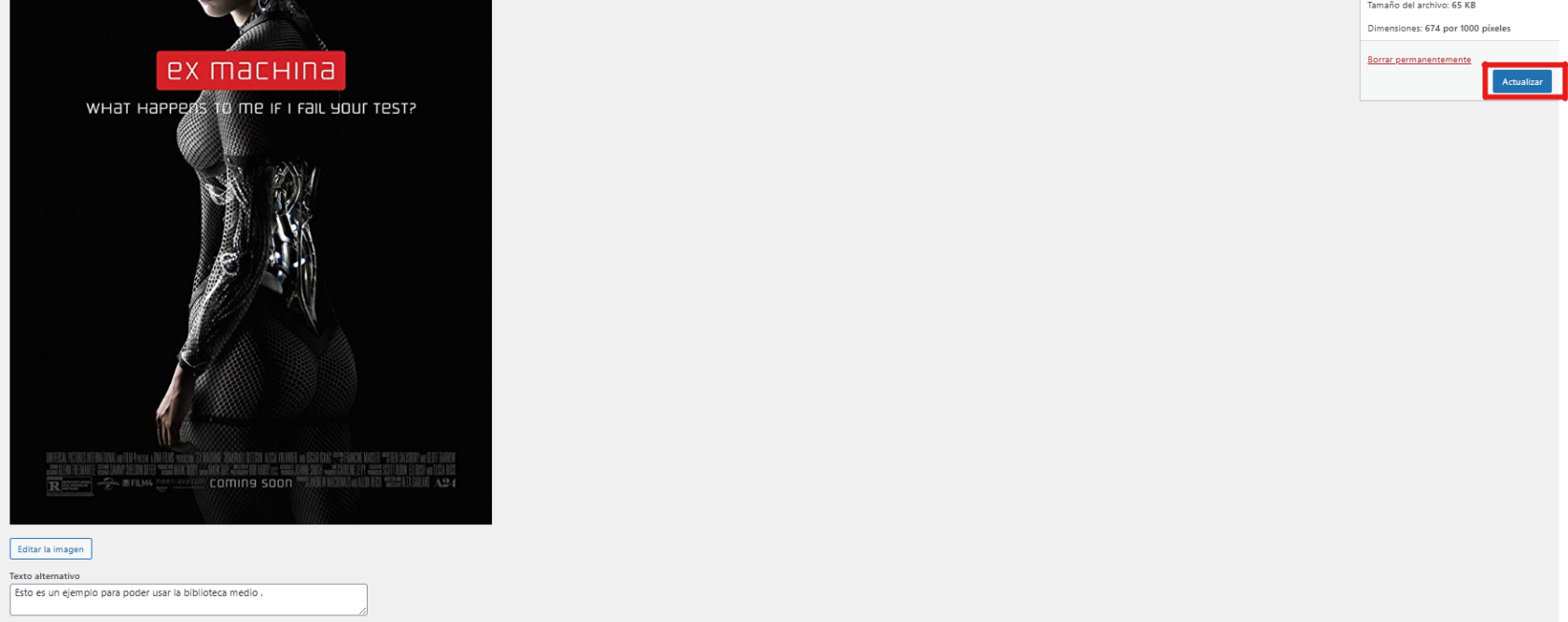 - En el editor de medios, busca "Texto alternativo".