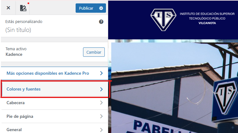 Paso 2: Clic en Colores y fuentes