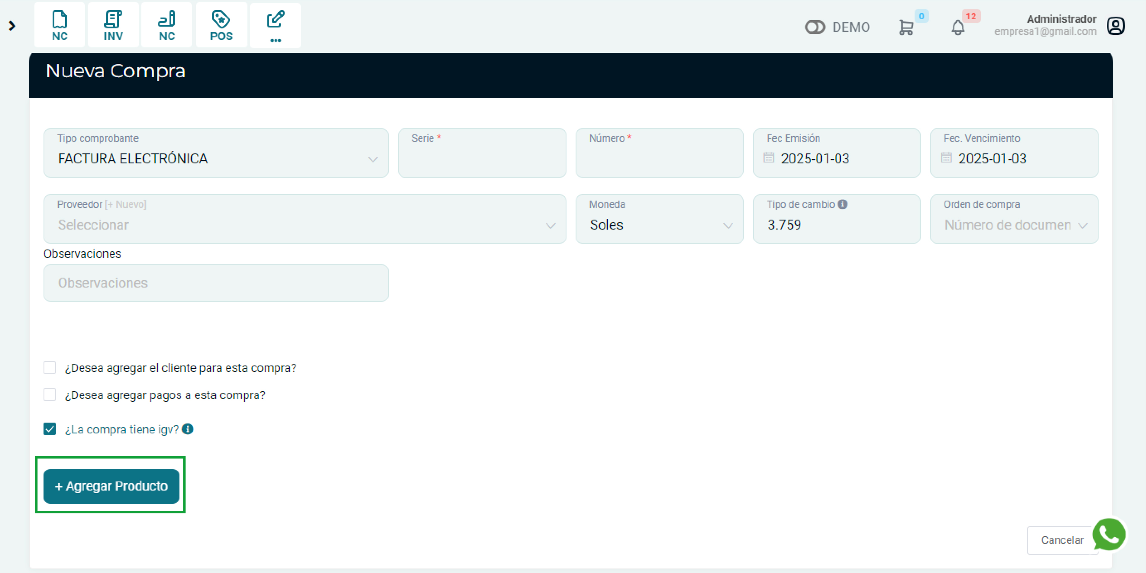En esta artículo te ayudaremos a ingresar las compras realizadas. Sigue estos pasos para realizarlo: