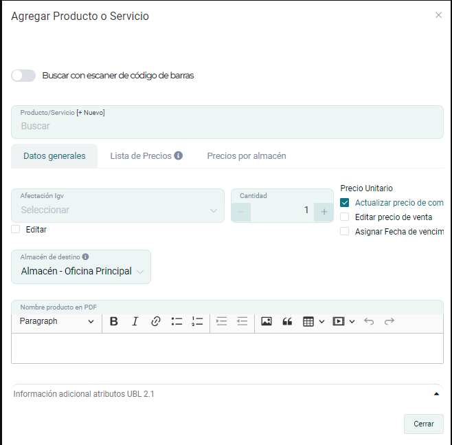 - Actualizar precio: Si el producto antes no tenia precio de compra con esta casilla podrás actualizarla.