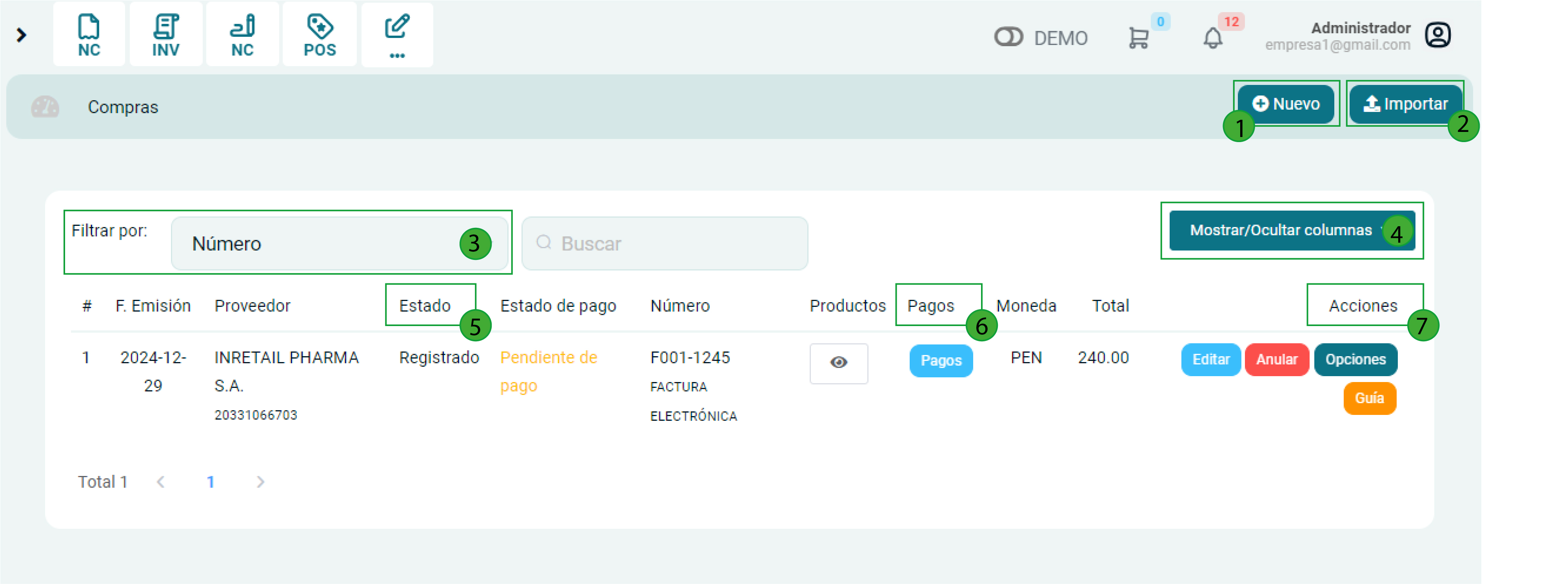 Nuevo: Permite crear una nueva compra, créelo paso a paso en este artículo.