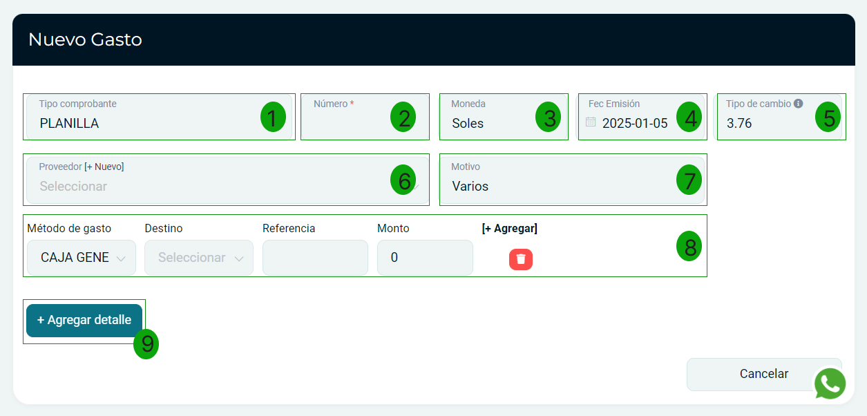 En esta área te ayudaremos a ingresar tus gastos diversos. Sigue estos pasos para realizarlo: