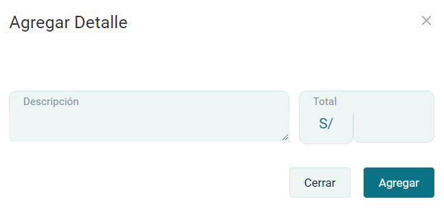 9. Agregar detalle: Selecciona el botón Agregar detalle. Aparecerá una ventada de Agregar detalle.