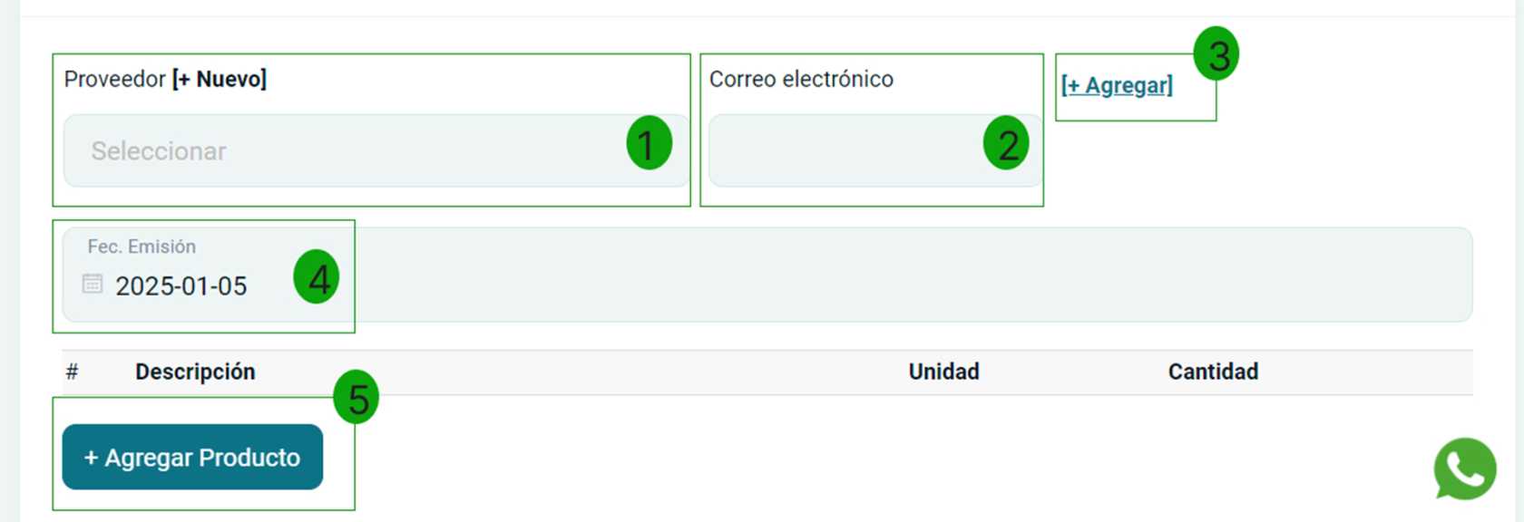 Botón agregar: Al seleccionar este botón te crea un campo de campo adicional, para poder agregar un nuevo proveedor y correo electrónico.
