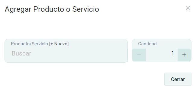 Agregar producto: Al seleccionar este botón se abrirá una ventana de Agregar Producto o Servicio. Agregue la cantidad a cotizar.