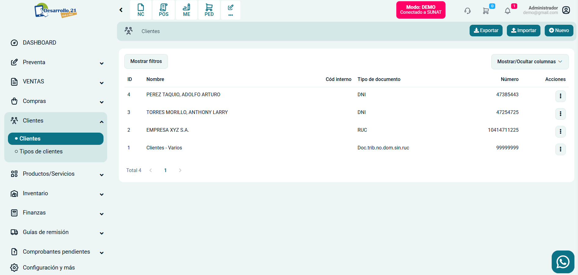 Ingresa al módulo de Clientes y luego selecciona subcategoría Clientes.