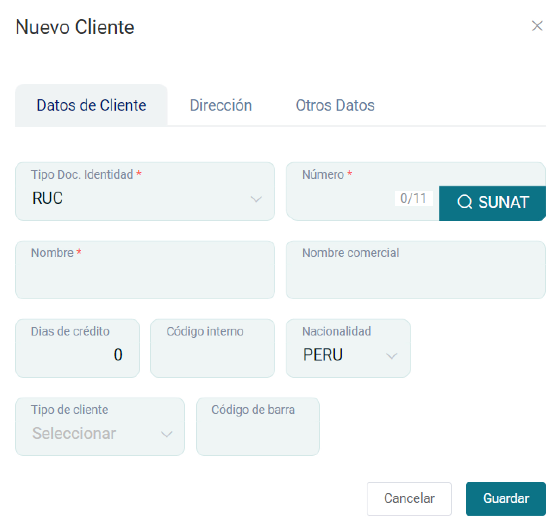 Posteriormente aparecerá el formulario para llenar los datos del Nuevo Cliente.