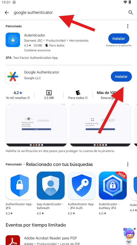 Primero buscamos en Playstore o Appstore en caso de Iphone el aplicativo cuyo nombre es Google Authenticator