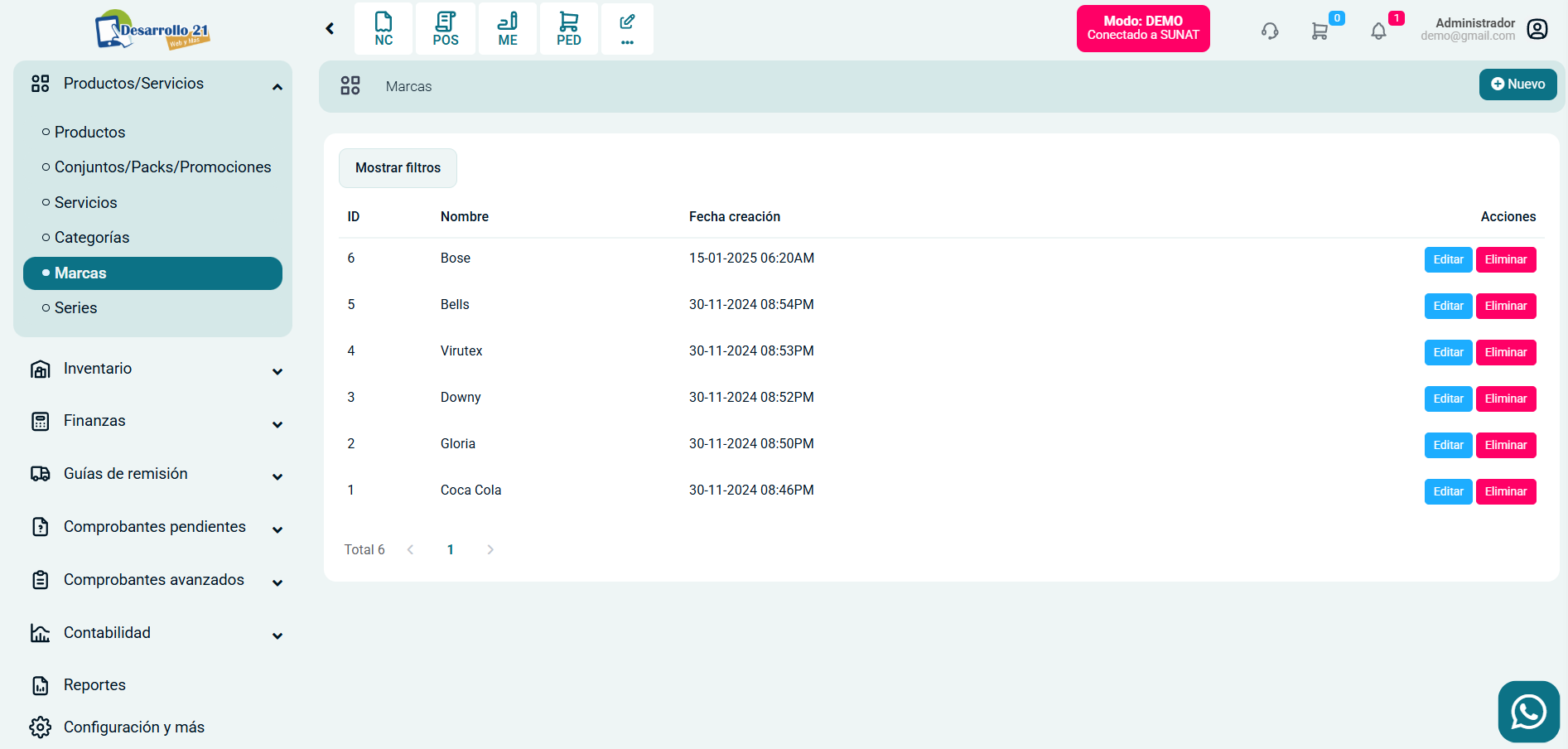 Ingresa al módulo de Productos/Servicios y luego selecciona la subcategoría Marcas.