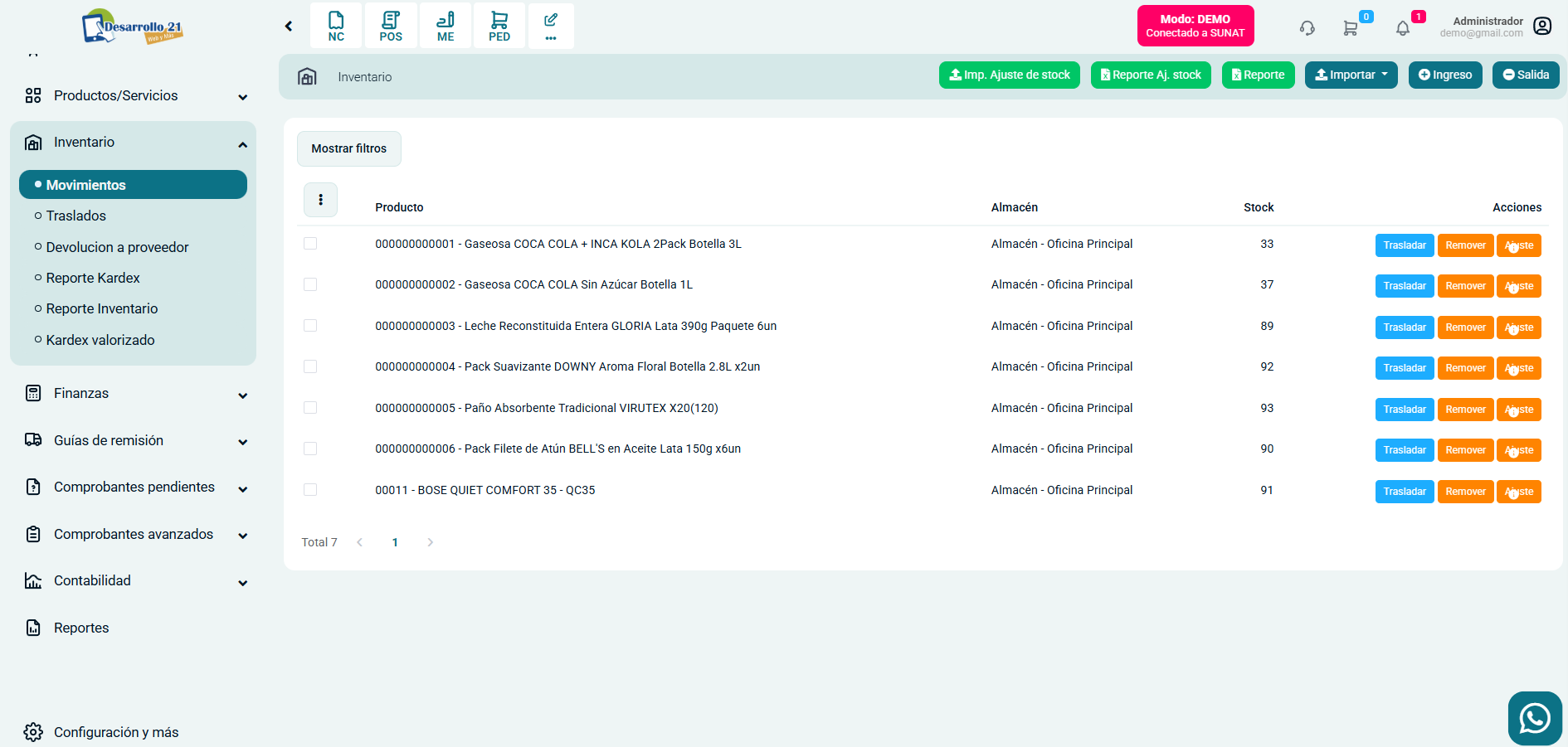 Ingresa al módulo de Inventario, luego selecciona la subcategoría Movimientos.