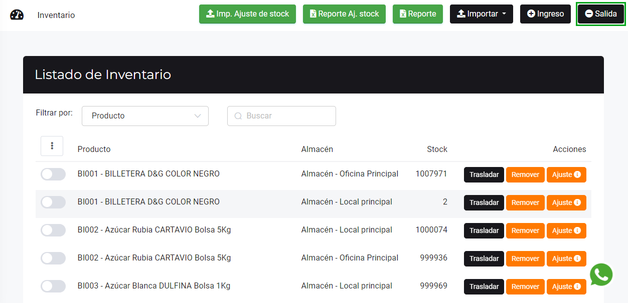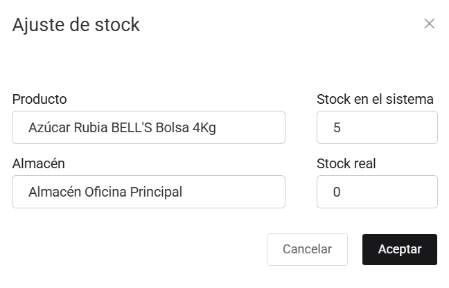 Este botón te ayuda a ajustar tu stock, en caso de que el stock del sistema no cuadre con el stock actual.