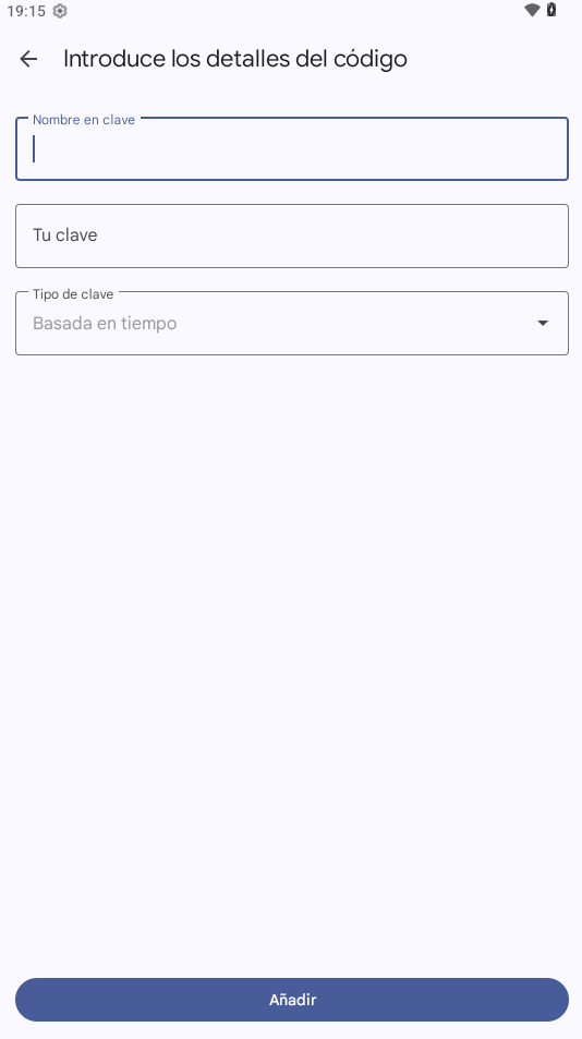 Primer paso ingresamos al aplicativo de Google Authenticator y hacemos click en el simbolo de + luego seleccionamos "Introduce una clave de configuración"