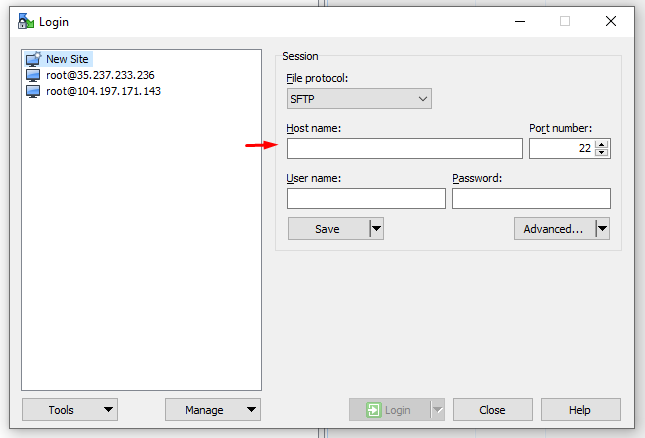 - Debe ingresar los datos solicitados: • Hostname: ip de su servidor • Username: usuario del servidor • Password: si es que lo hubiese, caso contrario use la llave privada